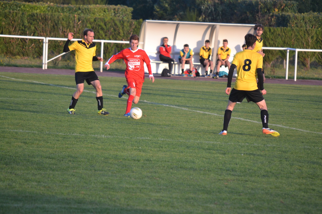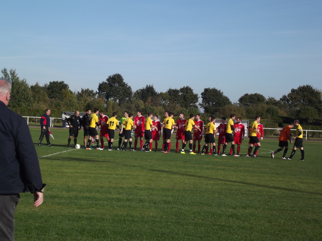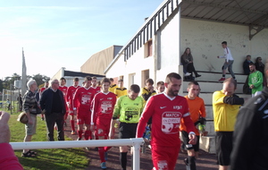 Le coup d'envoi fictif était donné par Denis Laguitton (1er adjoint du maire). Le match lui, démarrait immédiatemment avec une domination des locaux qui se mettait en place. Les rouges et blancs se trouvaient très bien et profitaient de conditions de jeux parfaites (terrain + météo) pour mettre leurs adversaires en difficultés.